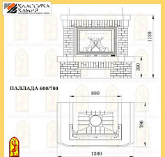 Притопочная и надтопочная часть выполнена из шамота песочно-желтого цвета. Каминная балка, изготовленная из МДФ и шпонированная дубом, послужит отличной полкой для каминных аксессуаров, таких как часы, канделябры, рамки с фотографиями и др.