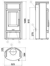- Встроенный подвод внешнего воздуха ø 125, который обеспечивает подачу свежего воздуха в камеру сгорания снаружи здания, что влияет на лучшее горение.
