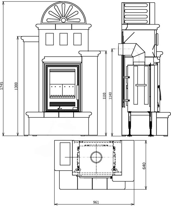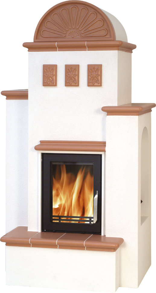 коричневым жаропрочным кафелем. Присоединение дымохода - верхнее и заднее.